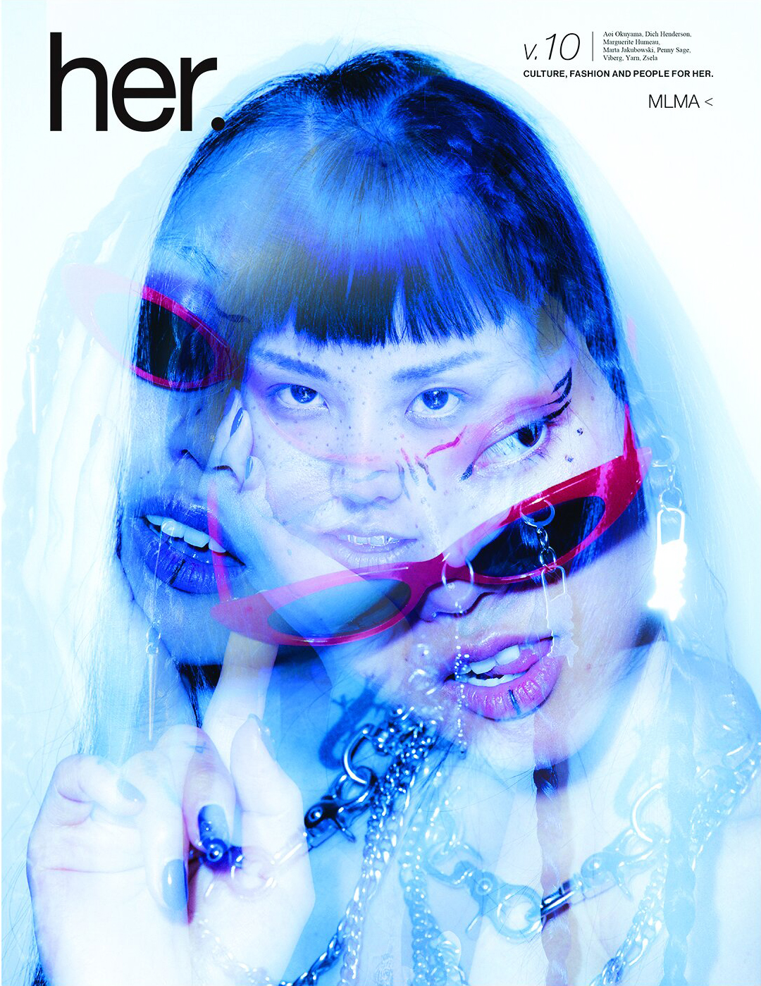 For the 5th anniversary of her. magazine we have enlisted both Kenneth Cappello and Peter Sutherland to shoot the covers with MLMA and Zsela the respective subjects. In addition, we have features on Aoi Okuyama who starred in Giri/Haji, New Zealand based Marino wool enthusiasts Yarn, young and exciting designer Marta Jakubowski and the hugely talented Marguerite Humeau are amongst this latest compelling installment which includes 256 pages.