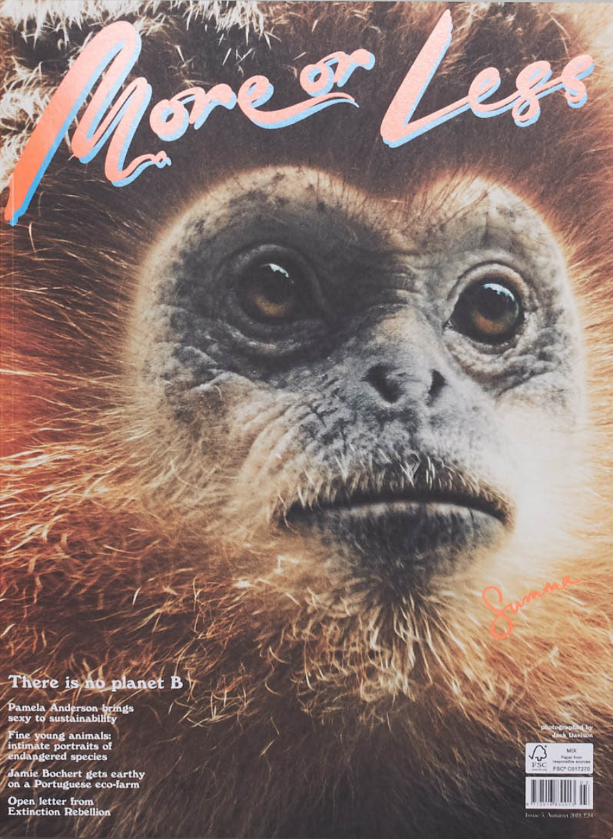 Excess is no longer in fashion. Creativity is a new luxury. A major goal of More Or Less is to provoke thought about the decisions we make when we buy clothes—factoring in the realities of cost and consumption. Issue #3—iconic cover girl Pamela Anderson shot by legends Inez Van Lamsweerde and Vinoodh Matadin and styled by Mel Ottenberg in sustainable fashion. The long time activist and philanthropist talks to Hanna Hanra about the environmental issues, Julian Assange and being vegan. In fact, if we all ate less meat, we would greatly reduce our impact on the climate emergency we are now faced with. Eat your vegetables!
